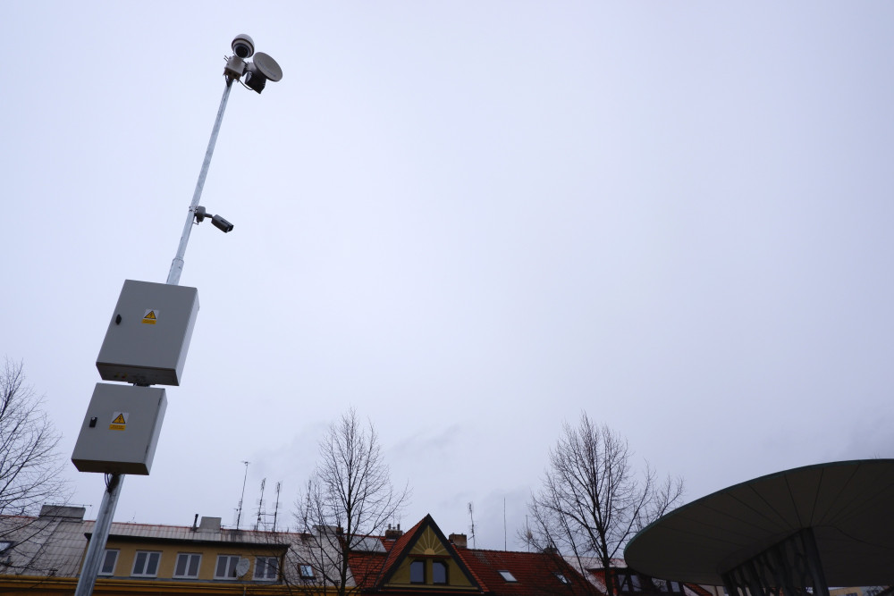 Sloup v Habrmanově parku, na který bude umístěn nový hotspot pro Wi-Fi zdarma