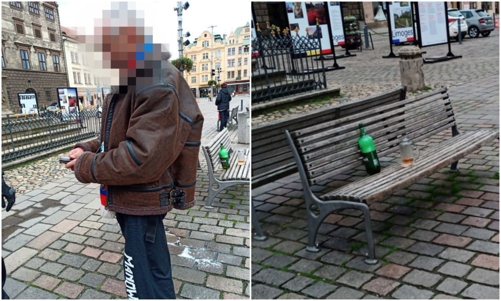 Muž beze studu močil před kolemjdoucími poblíž morového sloupu, před strážníky pak teatrálně dopíjel pivo