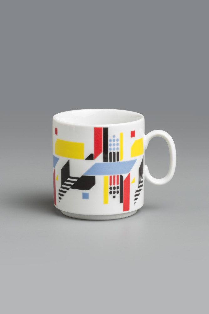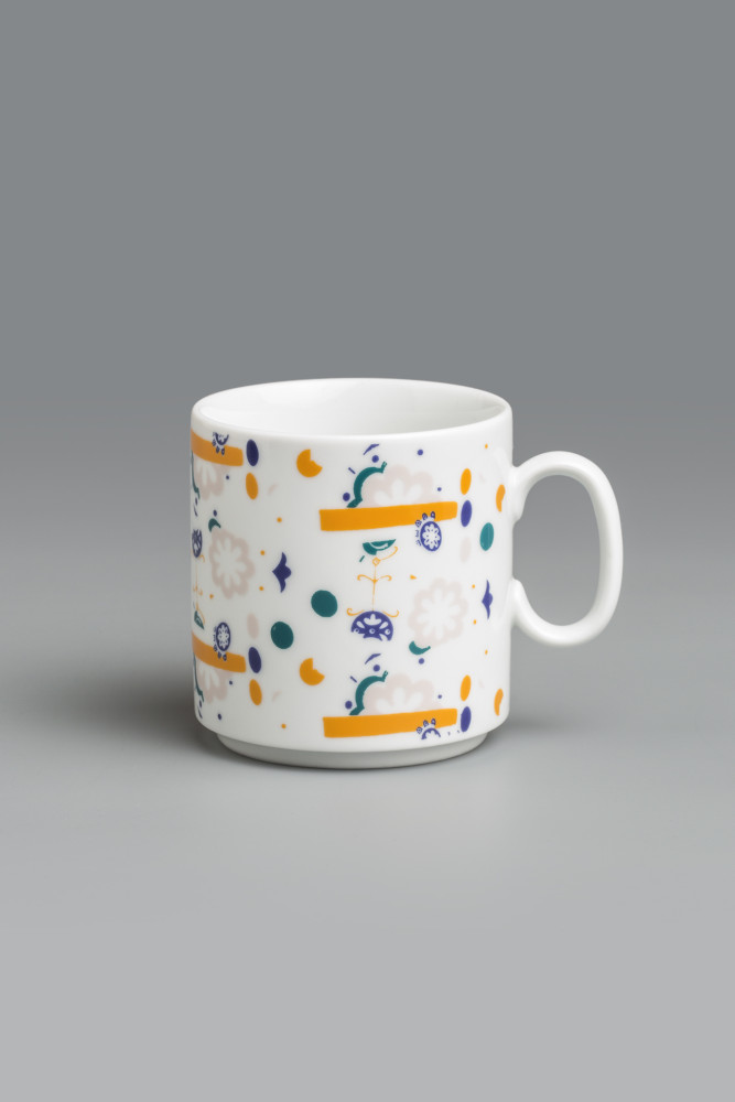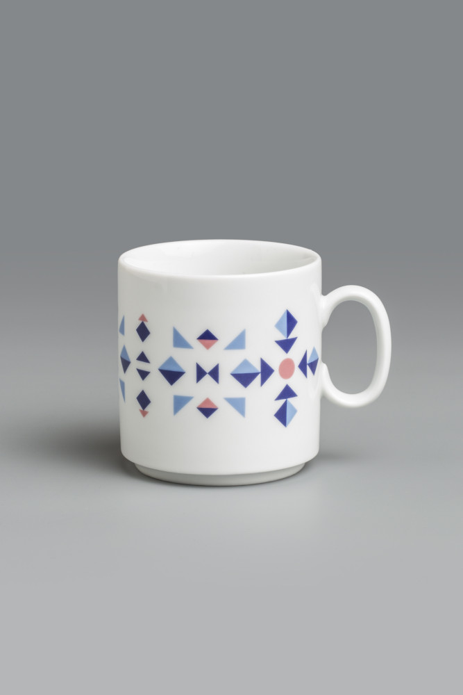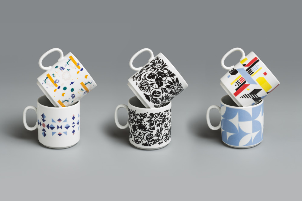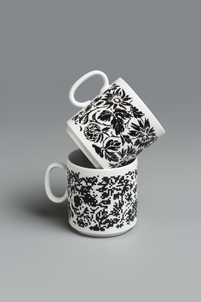 Kristýna Blínová: Digitální střepy / Motiv na hrnku vznikl digitálním roztříštěním již existujícího, konkrétního dekoru ze sedmdesátých let. Rozbíjením, dekonstruováním „porcelánu“ v počítači a následným slepením jeho různorodých střepů zpátky dohromady v