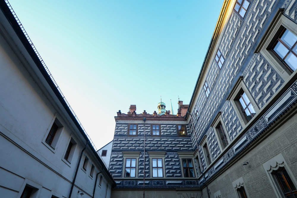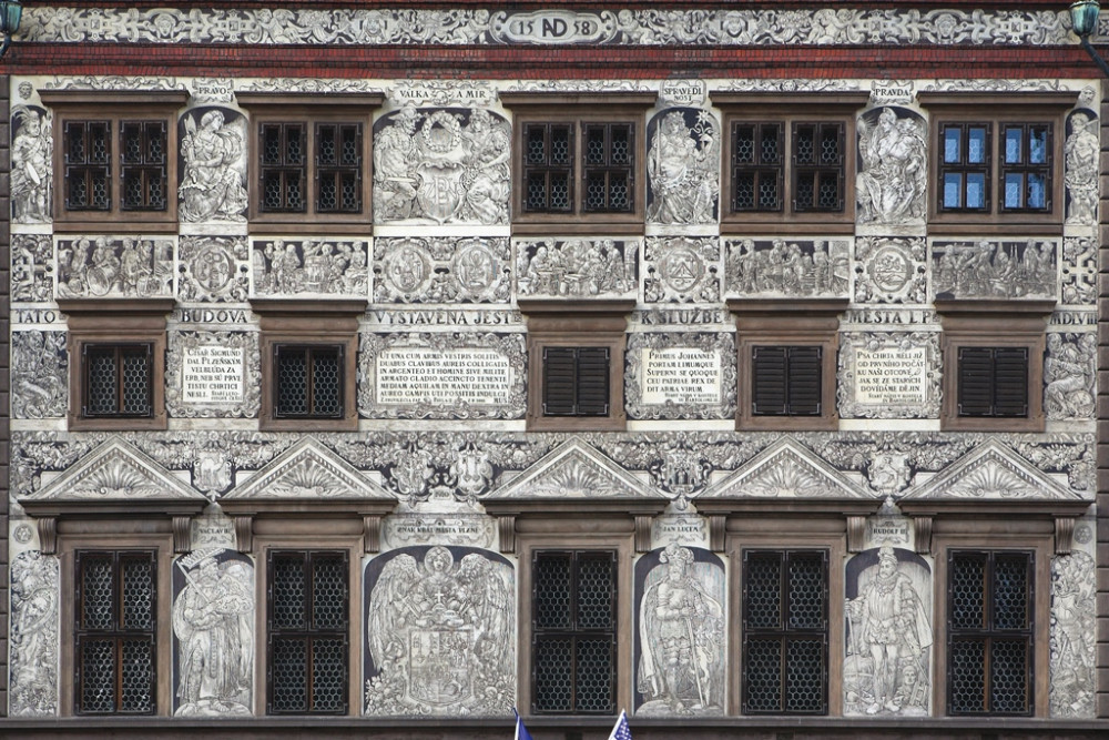 Vnitroblok plzeňského magistrátu má opravenou sgrafitovou výzdobu. Použila se původní historická technologie