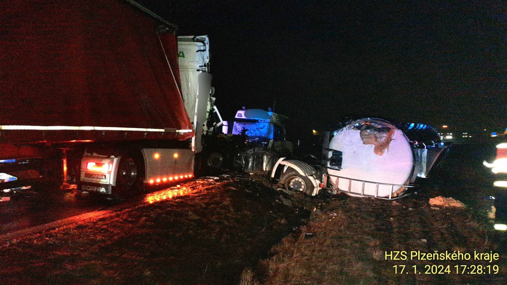 Střet kamionu s cisternou