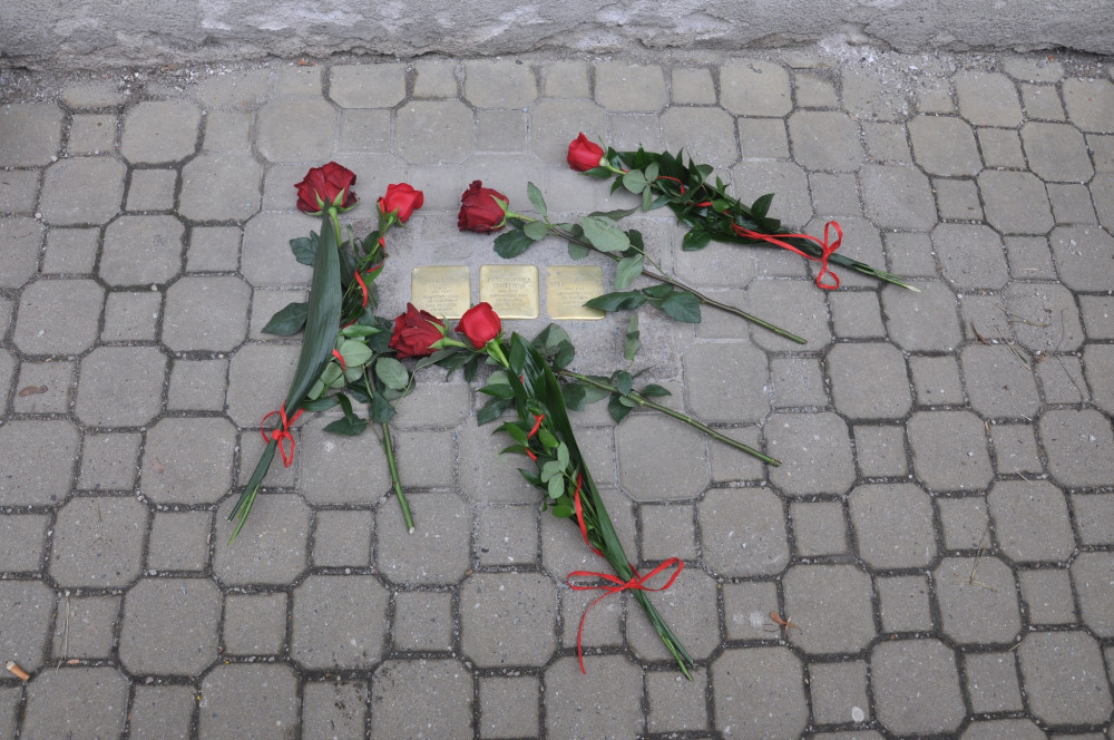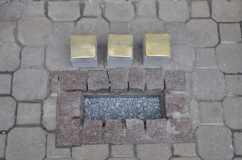 Tři kameny zmizelých připomínají rodinu Stadlerových, kterou před 82 lety odvezl transport do Terezína