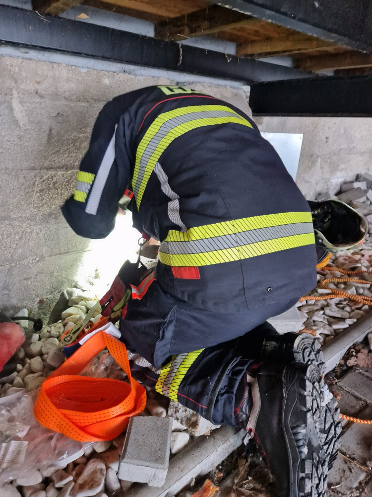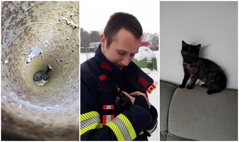 Zoufalé mňoukání kotěte se z trubky ozývalo několik dní, zvířete se po vyproštění ujal jeden z hasičů
