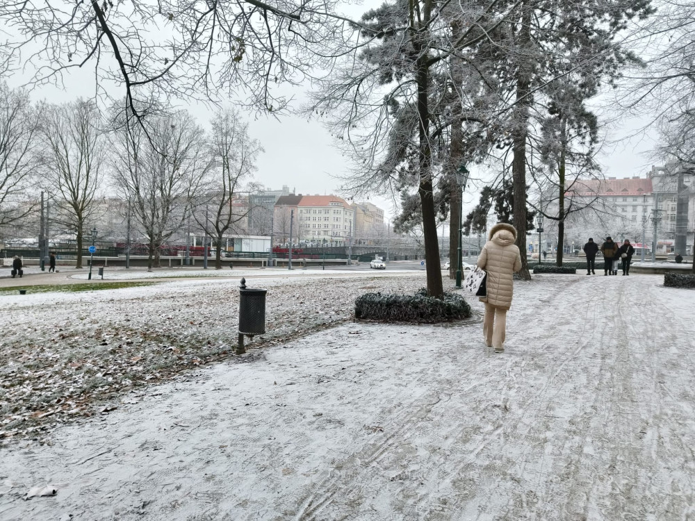 Díky neobvyklému meteorologickému jevu napadl ráno jen v centru Plzně sníh. Jde o průmyslové sněžení