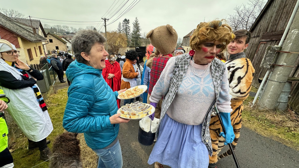 Na pestrém masopustu v příhraniční obci frčely sladkosti, koblihy, šišky, vošouchy, báč i pití všech barev