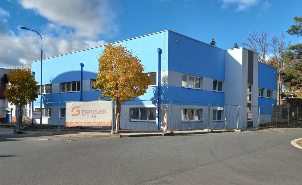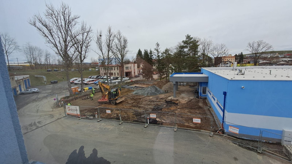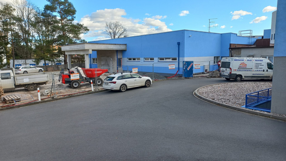 V areálu Klatovské nemocnice už stojí nový pavilon dialýzy. Ještě chybí dodělat plochu před vstupem