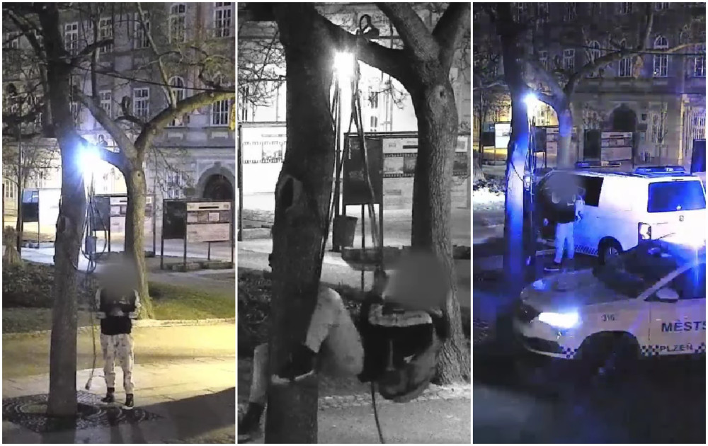 VIDEO: Zloděj se houpal jako Tarzan na prodlužovačce, jeho prohru s kabelem zachytila kamera v sadovém okruhu