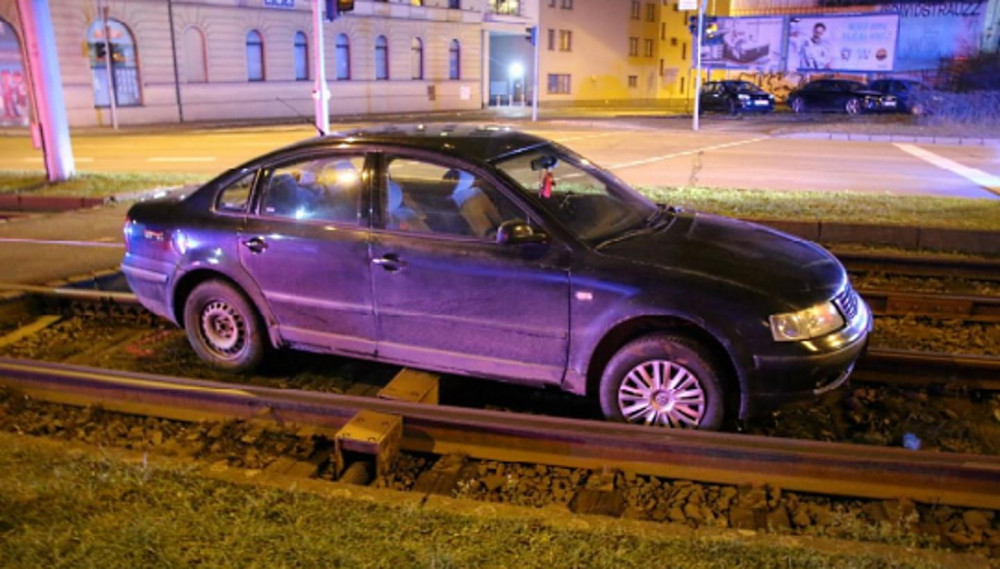 VIDEO: Opilý řidič se netrefil do odbočovacího pruhu a kodrcal se po tramvajovém pásu