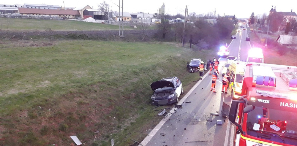 Hromadná nehoda čtyř aut si vyžádala několik zraněných, záchranáři převezli do nemocnice i jednoho kojence