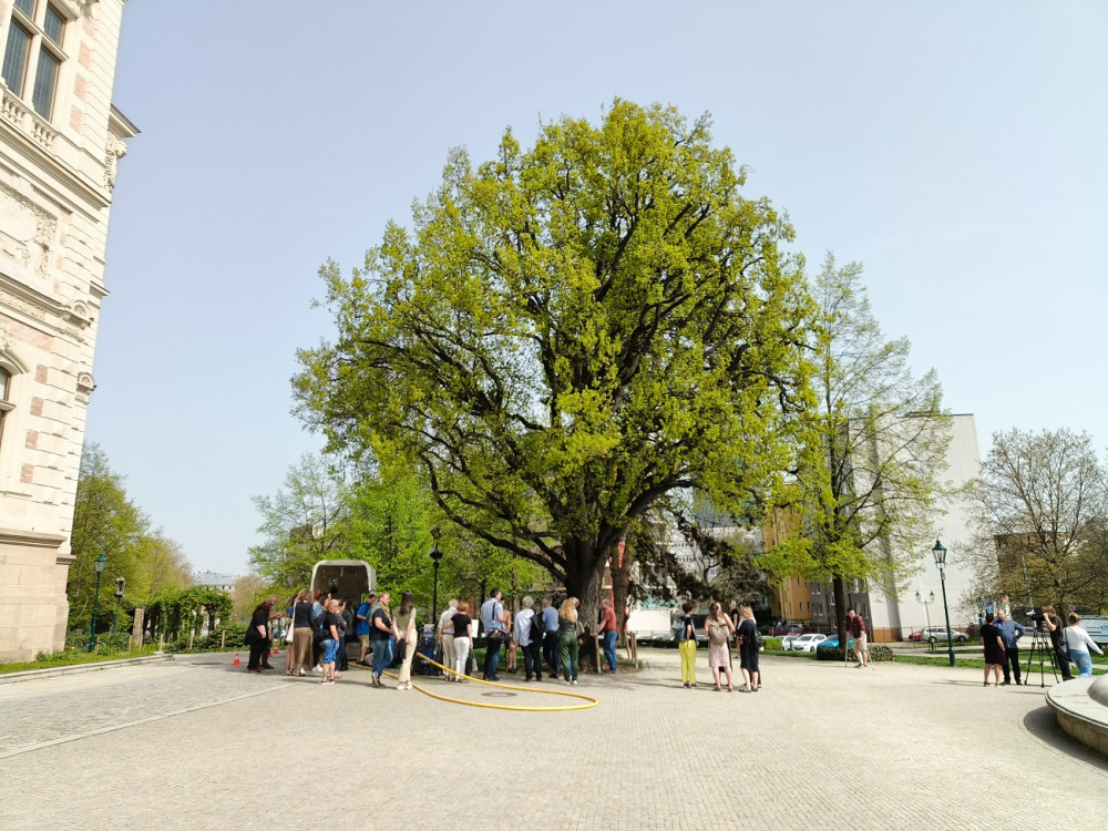 Stoletý dub v centru města dostal speciální infuzi, která ho vyživí a ochrání před škůdci