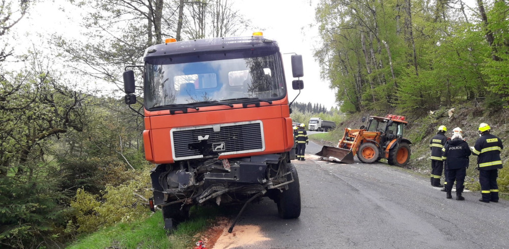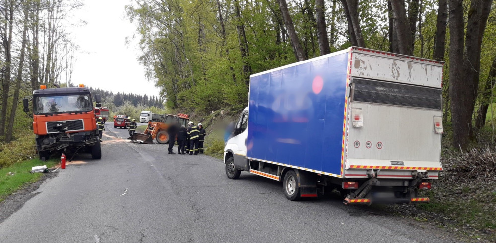 Při další nehodě se střetl nákladní vůz, traktor a dodávka