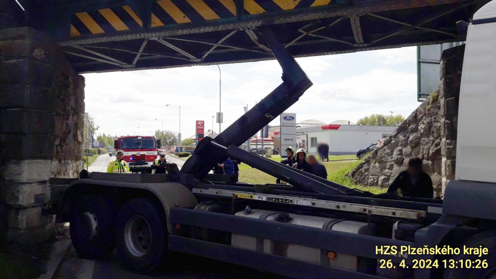 Nechvalně proslulá gilotina má další oběť. Pod nebezpečný most se nevešel nákladní automobil s ramenem