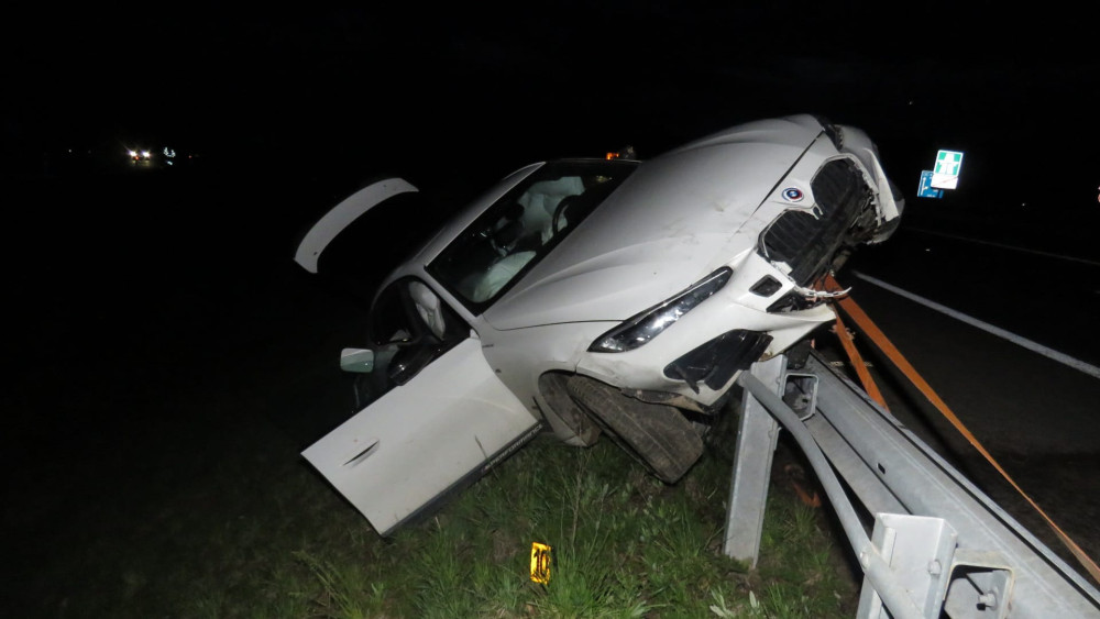 Řidič BMW s 1,89 promile nezvládl nájezd na dálnici D5. Jízdu potupně zakončil napíchnutý na svodidla