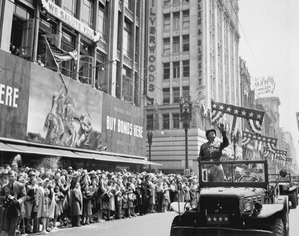 Los Angeles 9. června 1945. Patton je bouřlivě vítán po návratu do USA