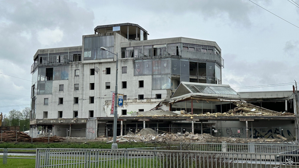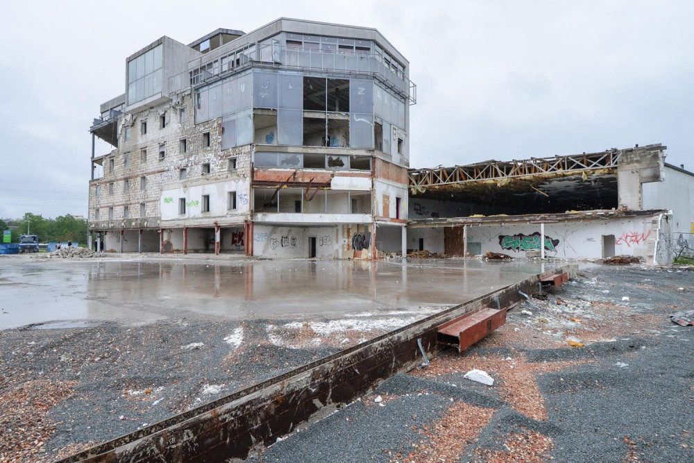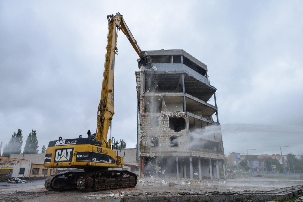 Poslední chvíle nechvalně proslulého Skleněného pekla. K zemi jde konečně i hlavní část největší černé stavby