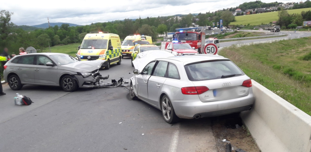 Čtyři ženy utrpěly zranění při čelním střetu dvou osobáků, dvě z nich museli vyprostit hasiči