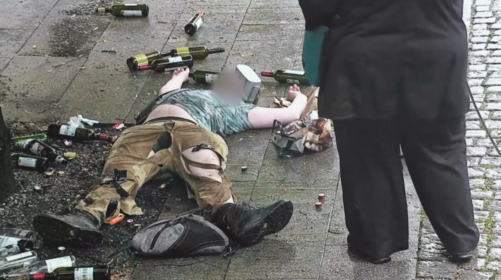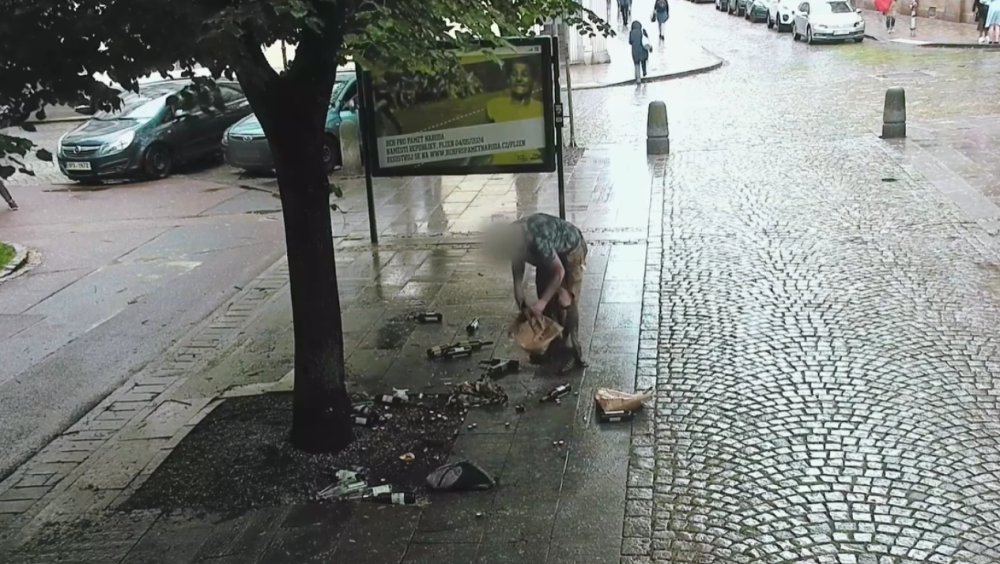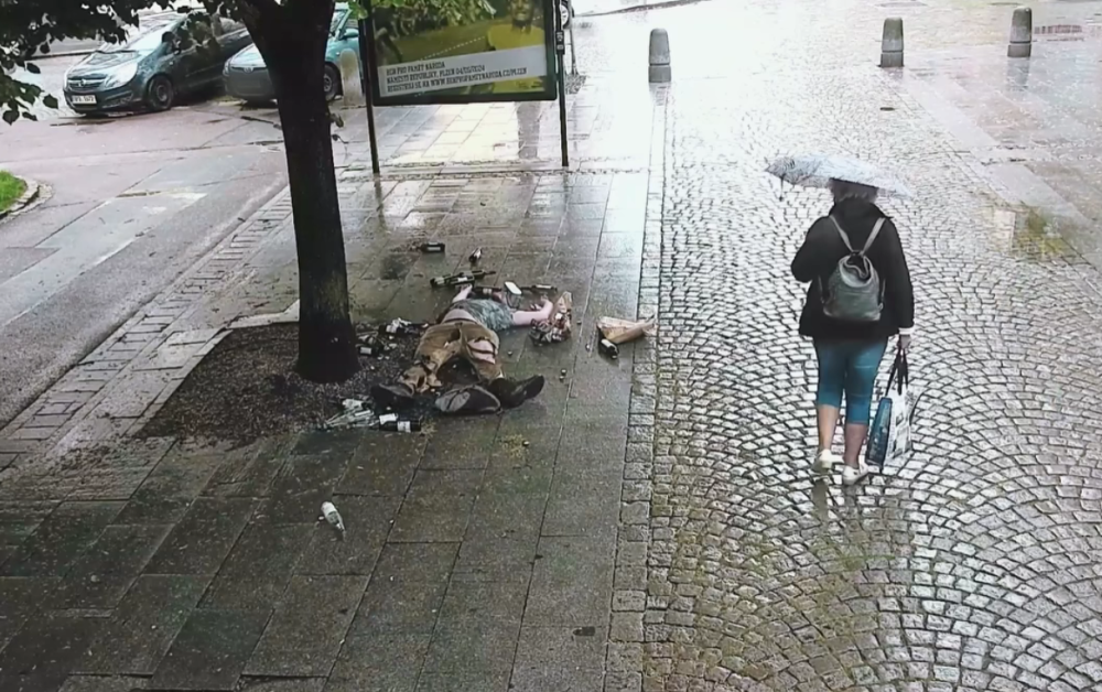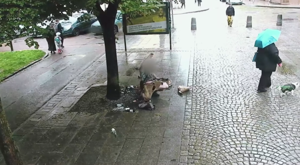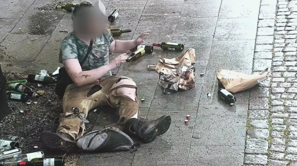 VIDEO: Student se v roztrhaném oblečení válel po zemi a hrál opilého bezdomovce, vyděsil několik lidí