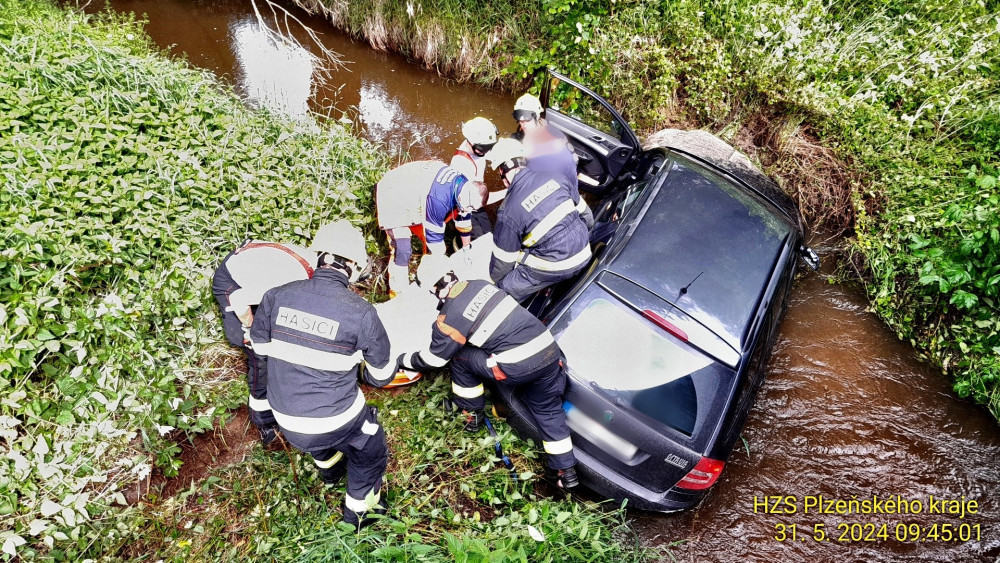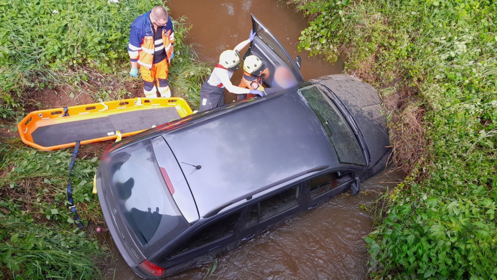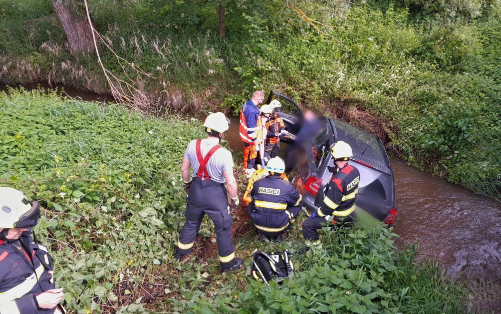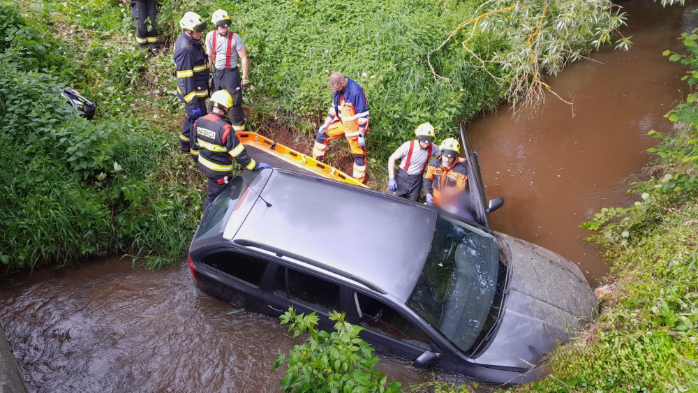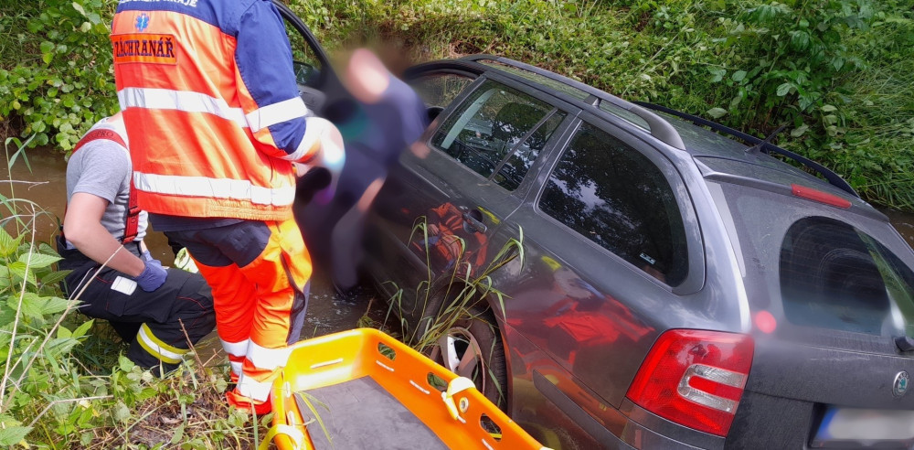 Senior v autě zakašlal, přejel do protisměru a skončil v korytě potoka
