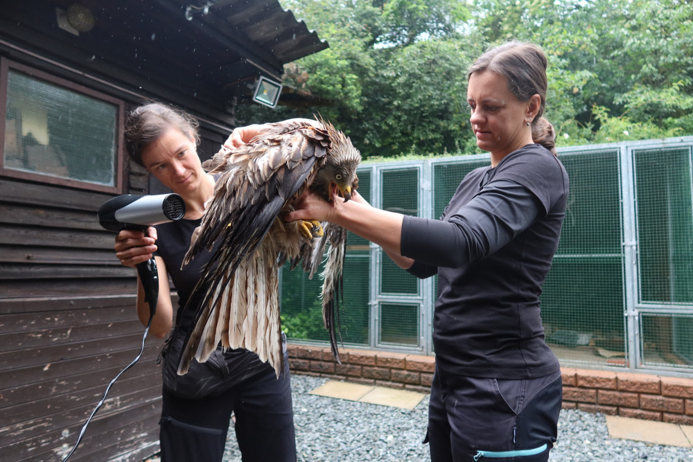 Silné lijáky potrápily i divoce žijící zvířata. Totálně promáčené dravce osušili fénem v záchranné stanici