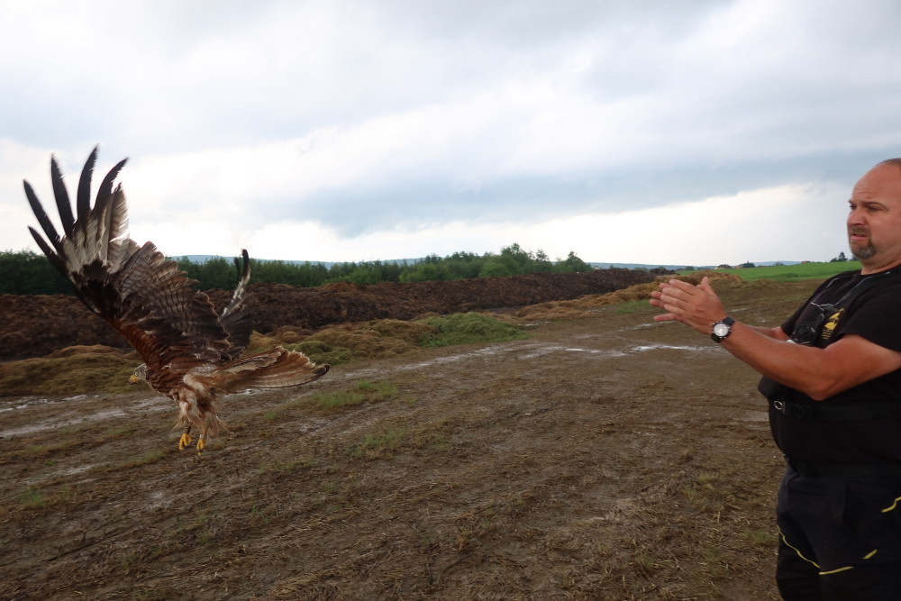Zachráněná samice luňáka zažila komfortní osušení fénem