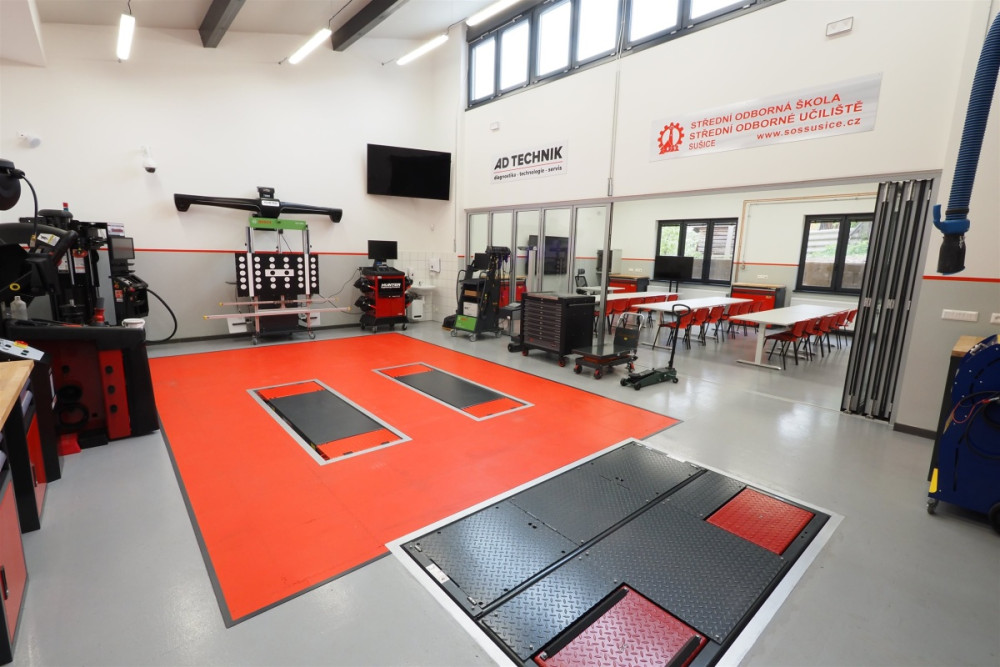 Škola proměnila staré garáže v moderní prostory, žáci se tam budou učit opravovat elektromobily