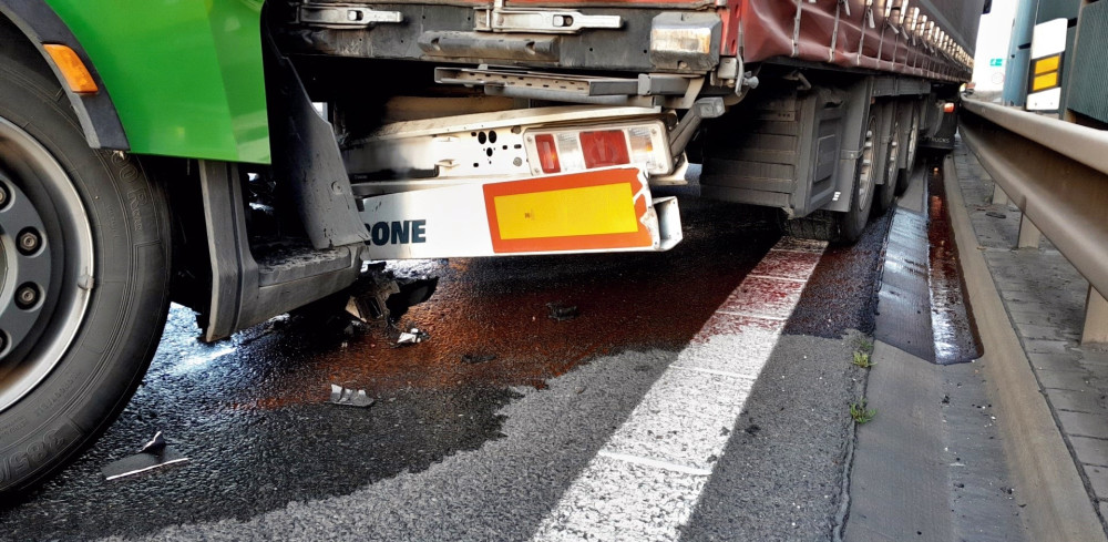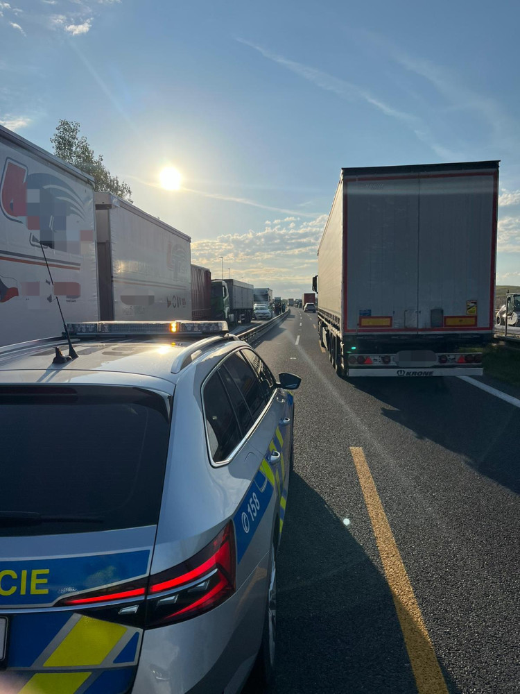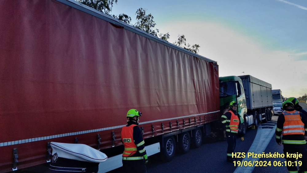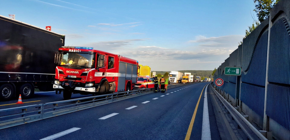 Dálnici D5 ve směru do Německa uzavřela nehoda dvou nákladních aut