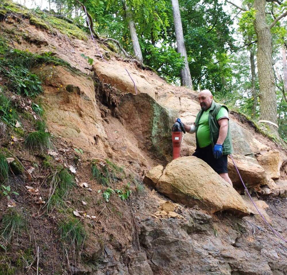 Skálu nad cestou u Velkého boleveckého rybníka narušila eroze a vypadávaly z ní kameny. S tím je teď konec