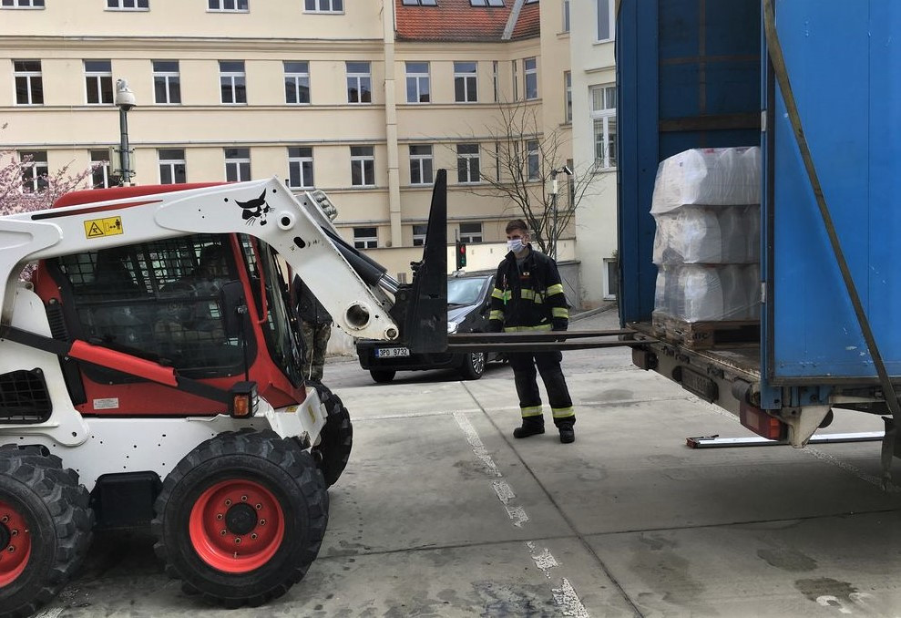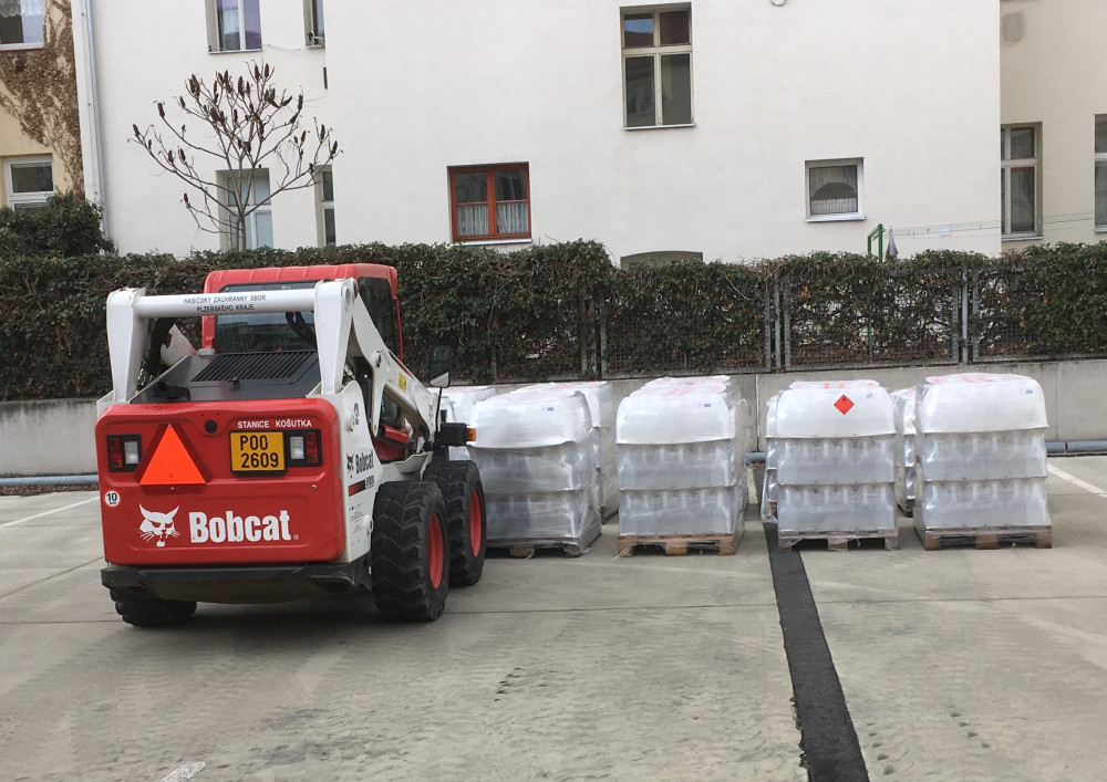 Dodávka dezinfekce právě dorazila na dvůr Krajského úřadu Plzeňského kraje