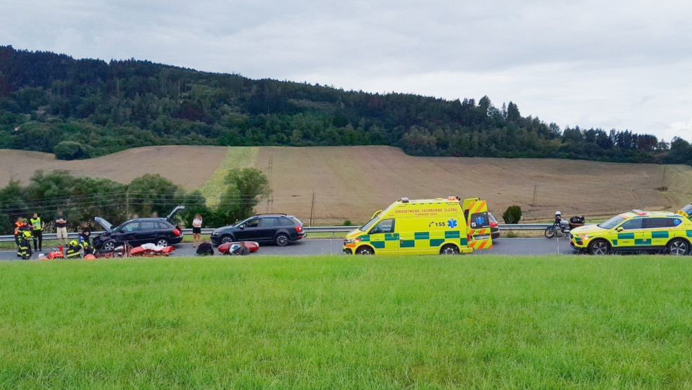 Motorkář se těžce zranil při střetu s osobákem. Nezvládl průjezd zatáčkou a vletěl do protisměru