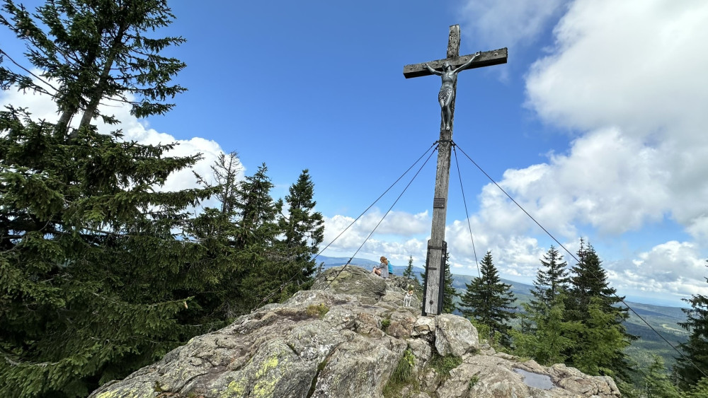 Skalnatý vrcholek Roklanu zdobí tradiční železný kříž