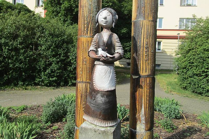 Oblíbenou sochu panenky s holoubkem opět poničili vandalové, letos už poněkolikáté