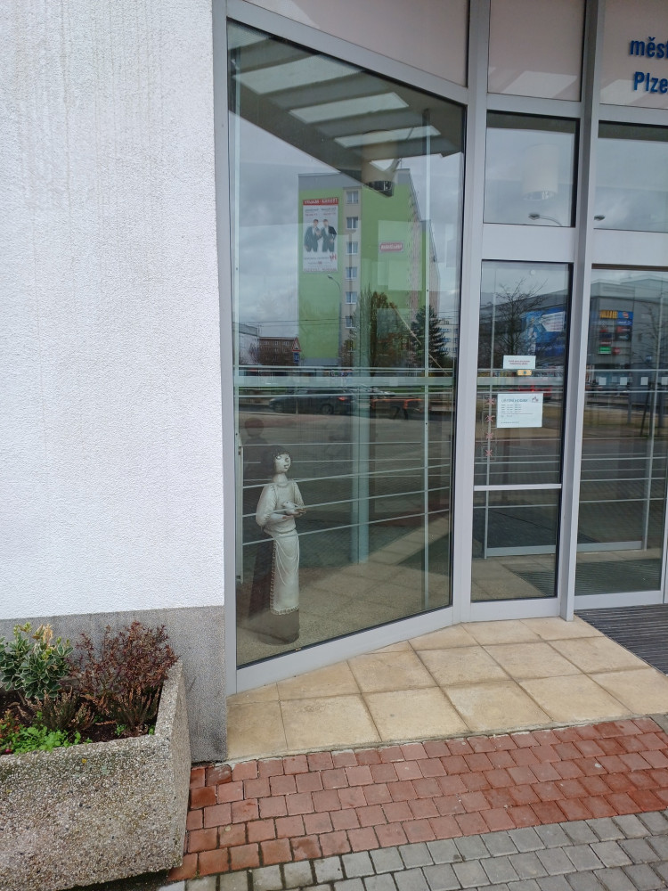 Zrenovovaný originál sochy je k vidění u vchodu do slovanské radnice