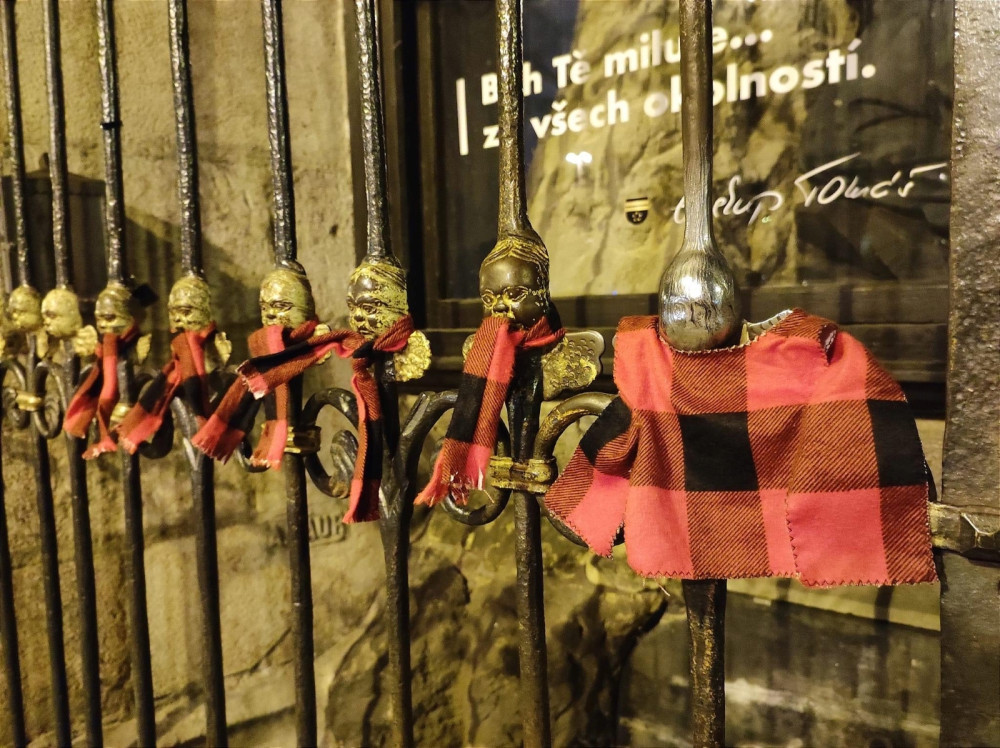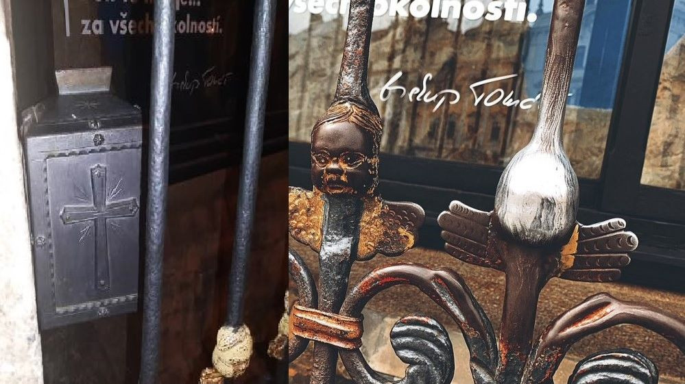 Z kasičky na milodary, kterou střeží legendární andělíček Ošahánek, ukradl recidivista 14 Kč. Hrozí mu tříletý trest