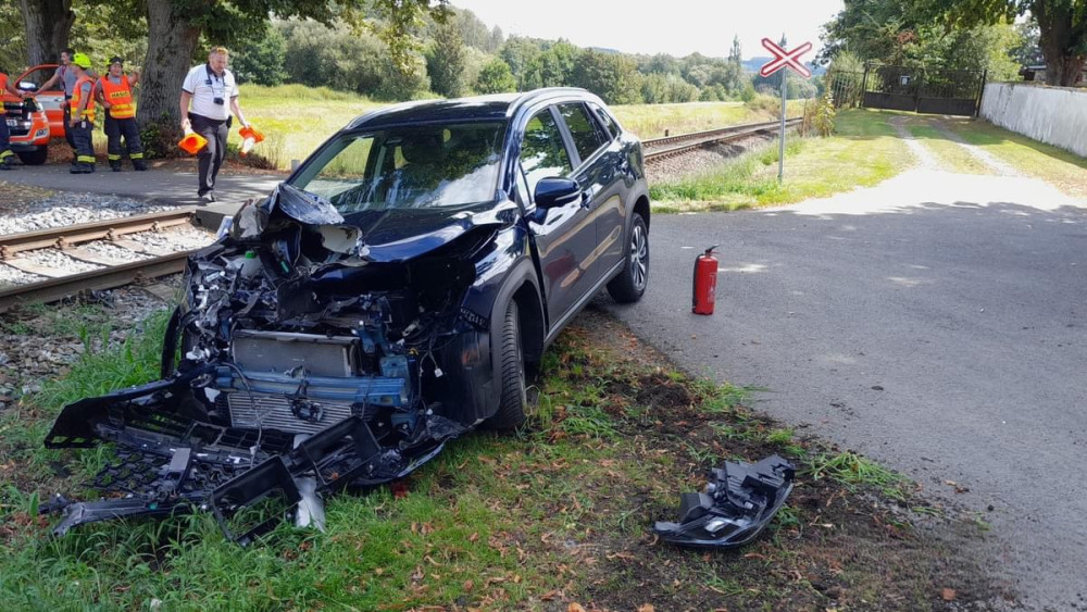 Vlak smetl na železničním přejezdu osobní automobil, který řídila pětašedesátiletá žena