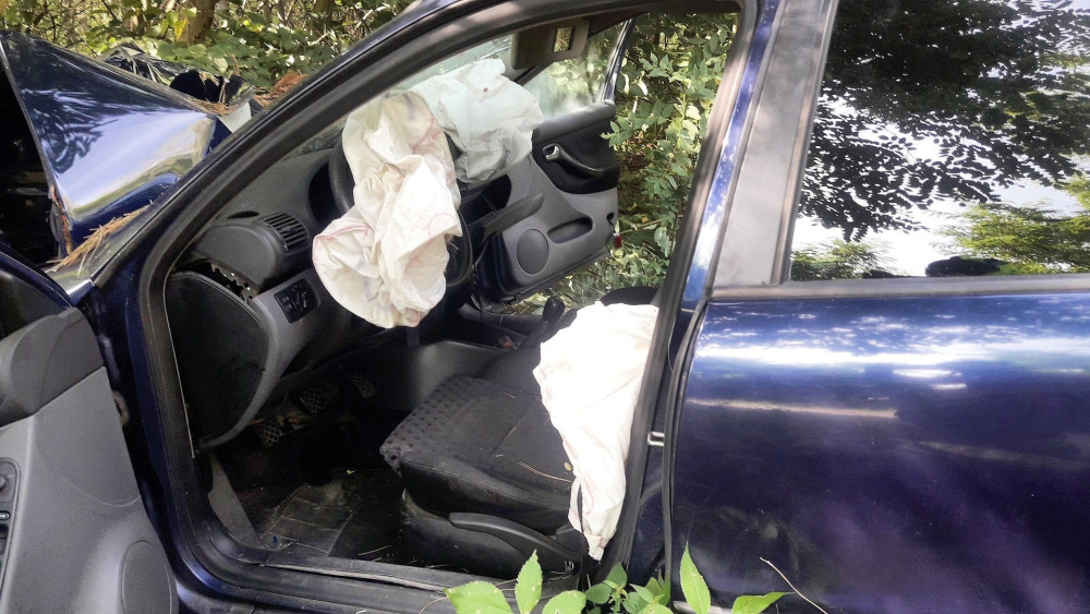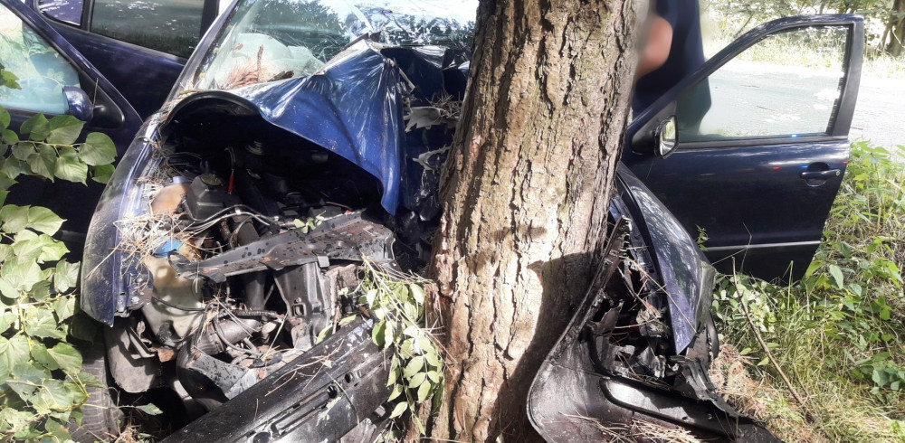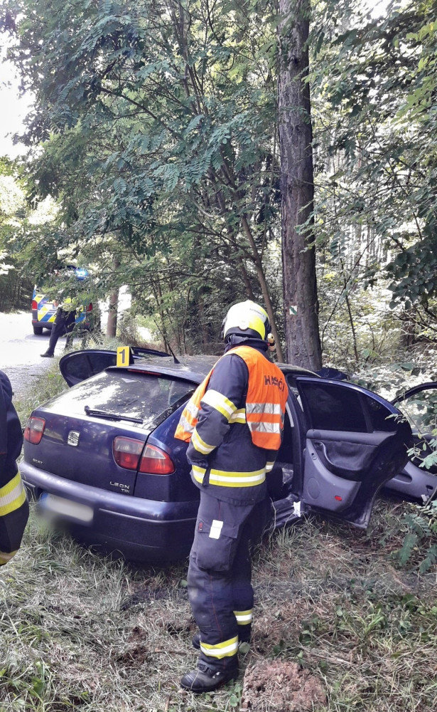 Řidič naboural do stromu a utekl. V autě nechal zraněného spolujezdce