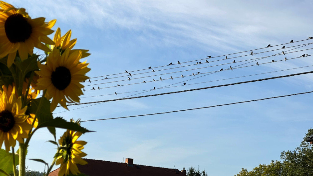 Už to začíná, na drátech se houfují vlaštovky a jiřičky. Chystají se na dalekou cestu do tropické Afriky