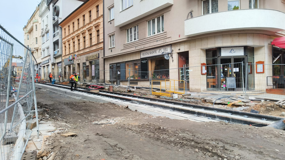 Konečně se dočkají řidiči, chodci i obchodníci, 11. listopadu má skončit oprava tramvajové trati ve Zbrojnické