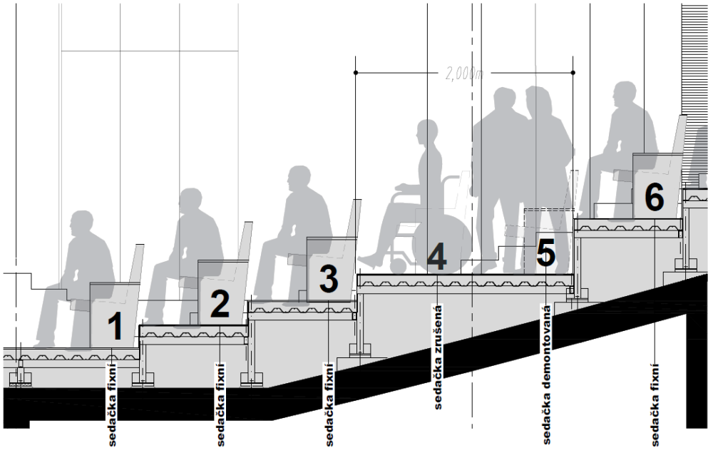 Vizualizace hlediště po úpravách pro vozíčkáře