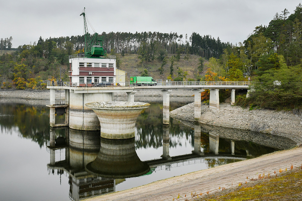 Hladina přehrady Hracholusky snížená o šest metrů už opět začíná stoupat. Skončila oprava obřího rychlouzávěru na elektrárně