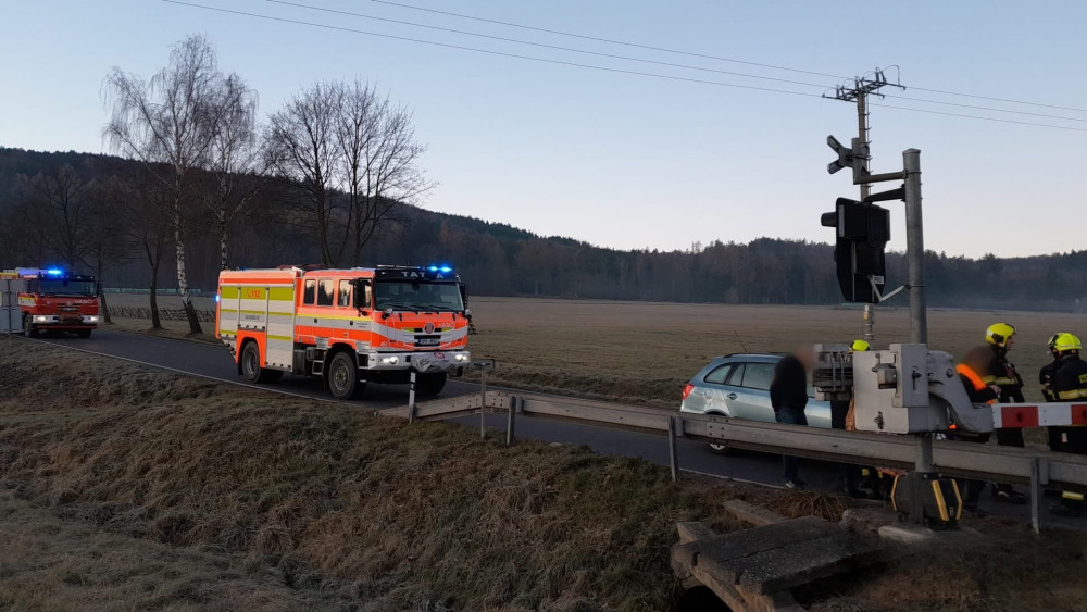 Na železničním přejezdu narazil osobák do vlaku. Mladá řidička nestačila své vozidlo zabrzdit