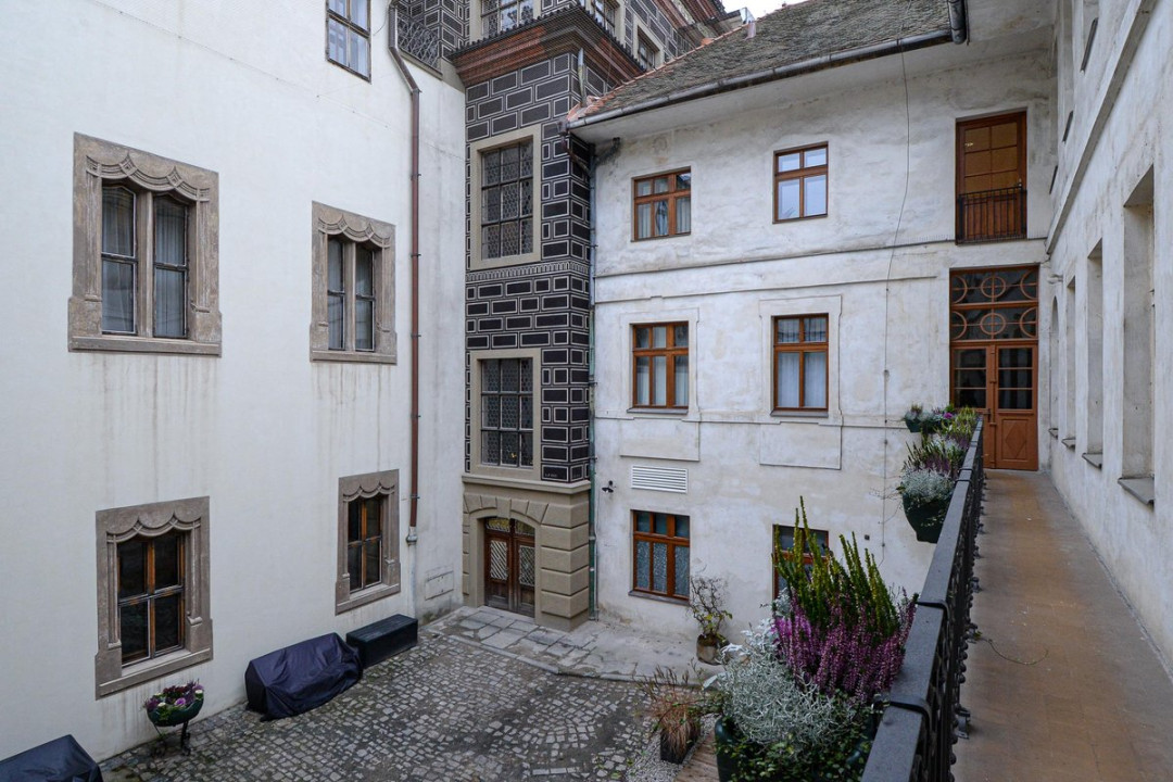 Restaurátoři obnovili sgrafitovou výzdobu na malém dvorku renesanční radnice, použili historické technologie