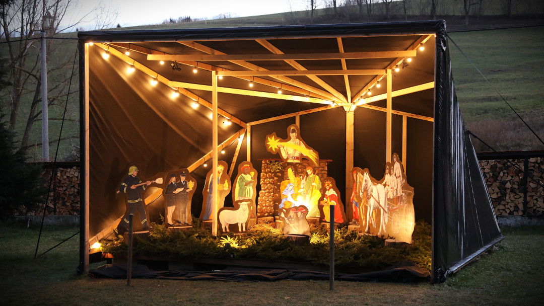 Šumavští hasiči z maličké obce vytvořili unikátní betlém. Základem jsou reálné postavy z jejich sboru