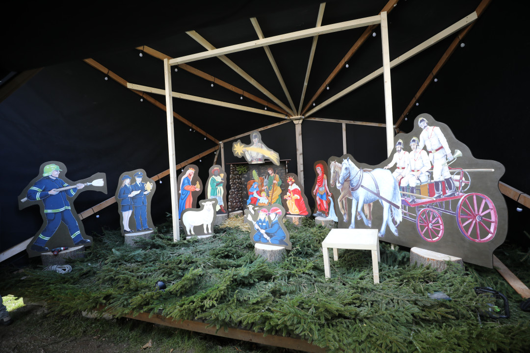 Při slavnostním představení betlému nechyběli ani skuteční hasiči, kteří jsou jeho součástí