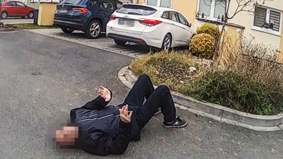 Z muže ležícího v dešti a v zimě na chodníku se vyklubal velký humorista i vtipálek. Akci ukončil na záchytce