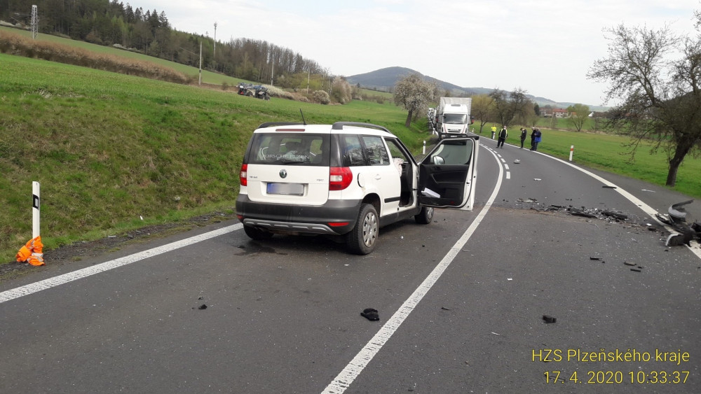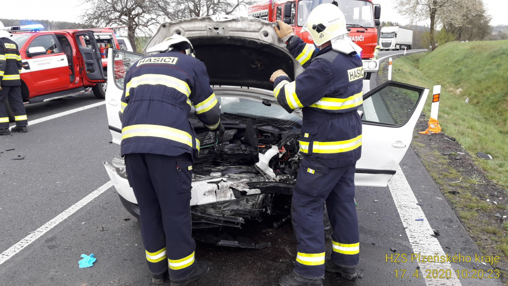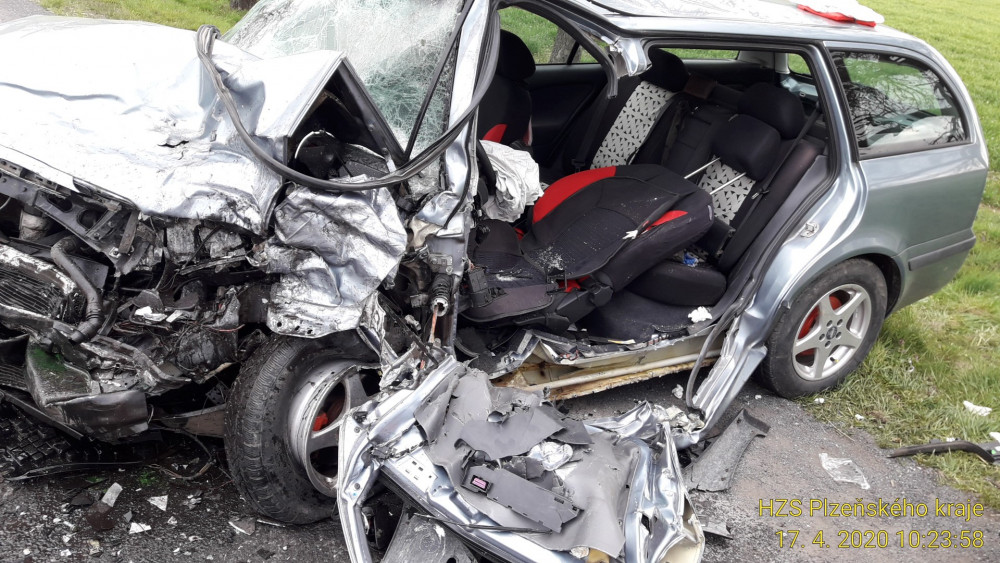 Při čelním střetu dvou osobních automobilů se vážně zranili tři lidé