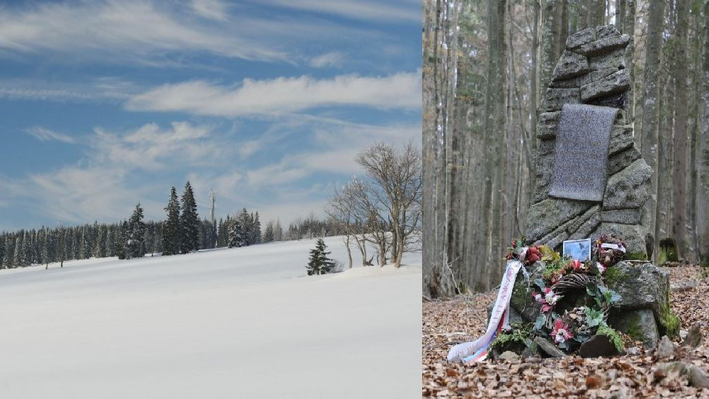 Památník připomínající tragickou štědrovečerní leteckou nehodu na Šumavě