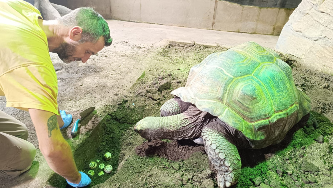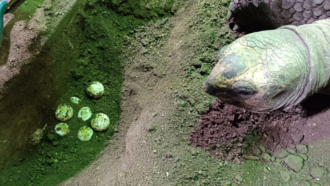 Samice želvy obrovské nepřestává ošetřovatele v zoo překvapovat, snesla další vejce