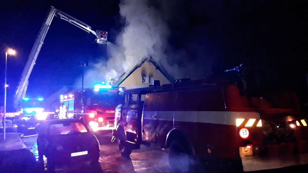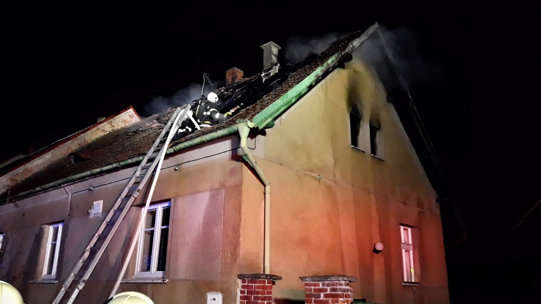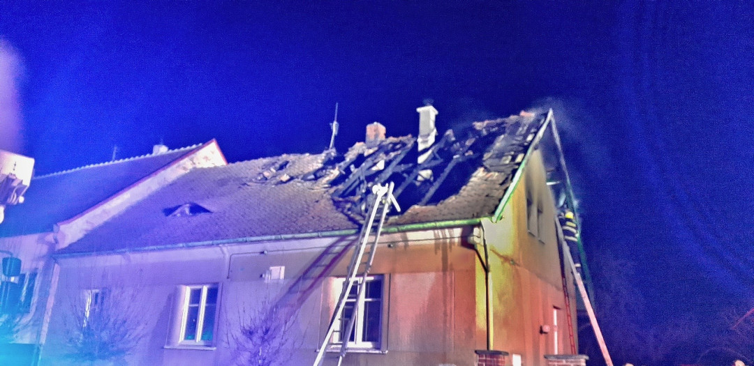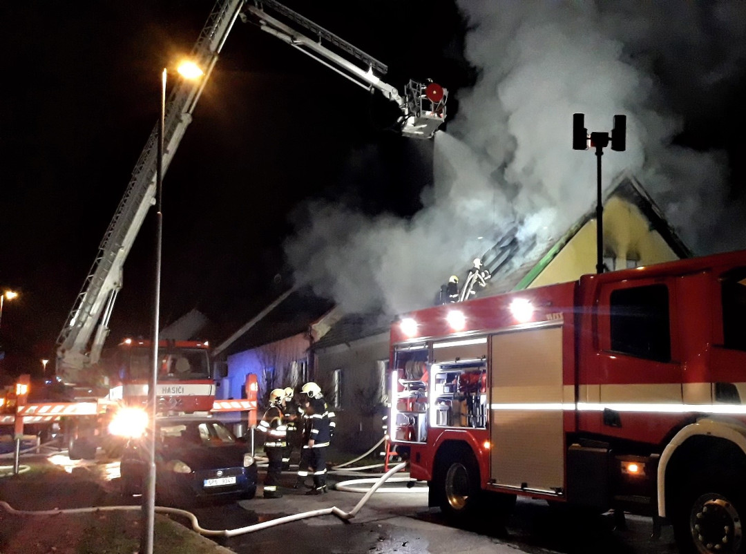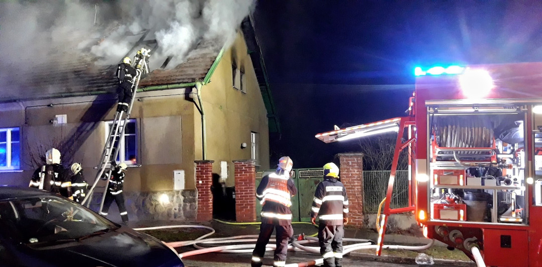 Počasí komplikovalo zásah u požáru rodinného domu, na silnici namrzala voda z hadic