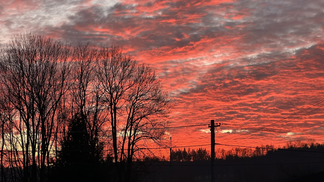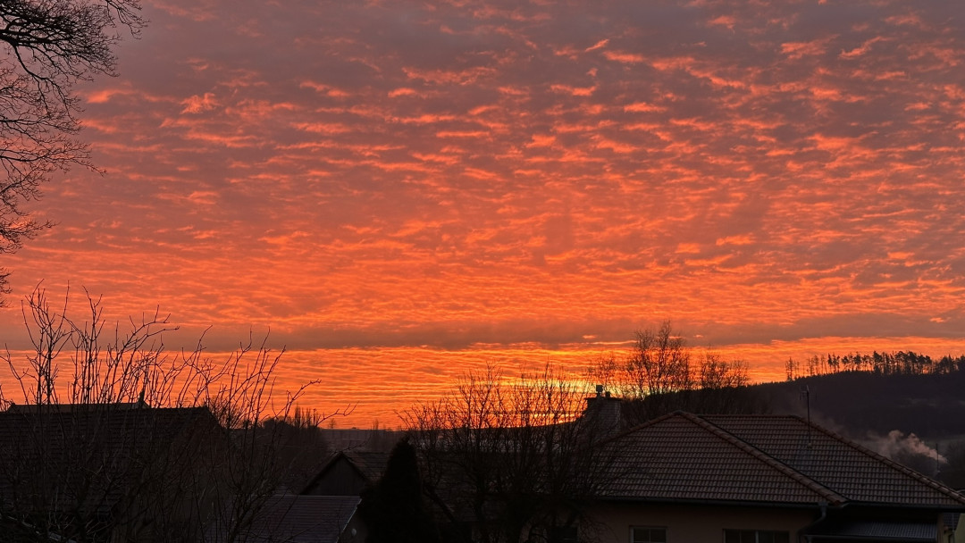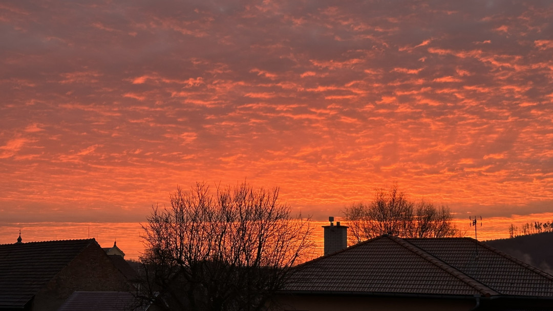 Oblohu při východu slunce rozzářily překrásně oranžové ranní červánky. Signalizují příchod špatného počasí