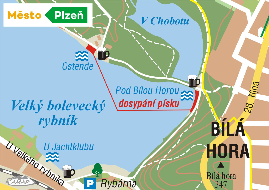 Město nechá vylepšit oblíbené pláže a břehy Velkého boleveckého rybníka, naveze se tam nový písek